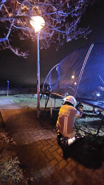 Ein durch den Wind verwehtes Trampolin hatte sich in einer Straßenlaterne verfangen und wurde durch uns demontiert.