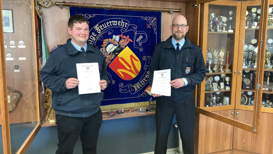 Am 28.02.2022 wurden unserem neuen Ortsbrandmeister Adrian Steinke und seinem Stellvertreter Philipp Rossi ihre Ernennungsurkunden durch den Geschäftsbereichsleiter Brand- und Katastrophenschutz Manuel Stanke, in Anwesenheit unseres Stadtbrandmeisters Jörg Deuter übergeben und die Vereidigung durchgeführt.
